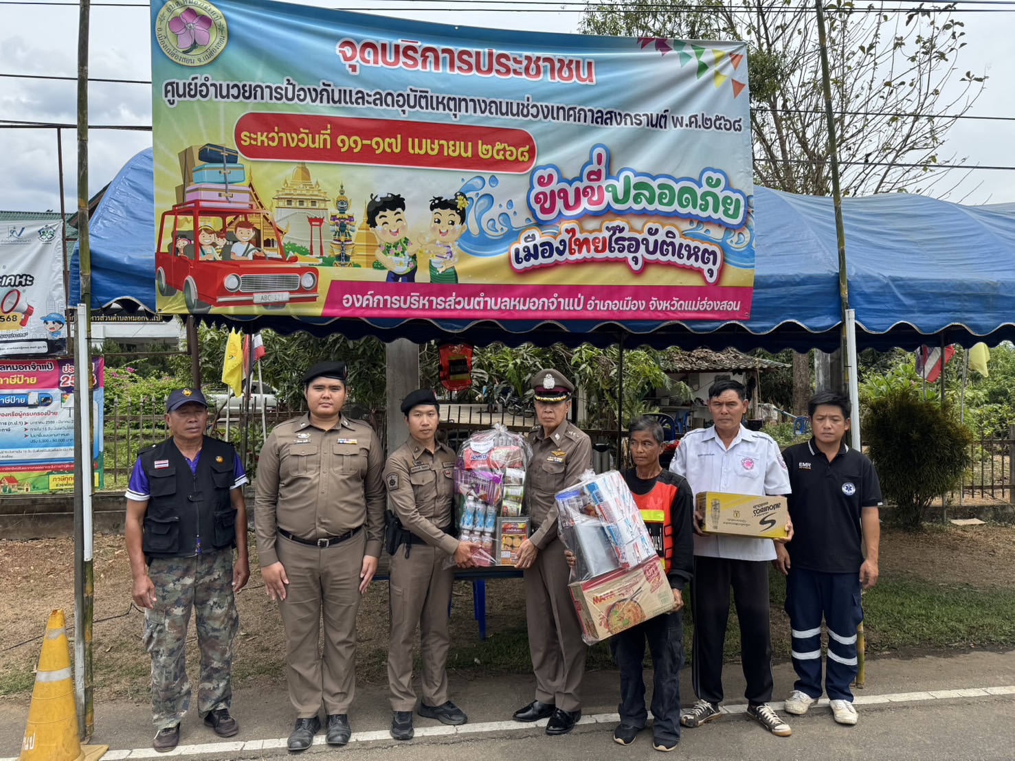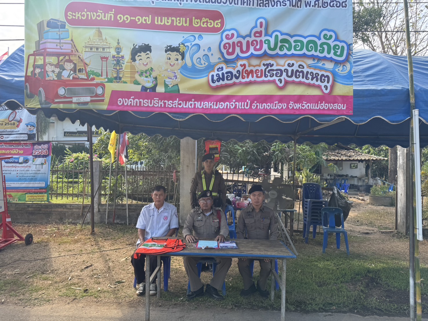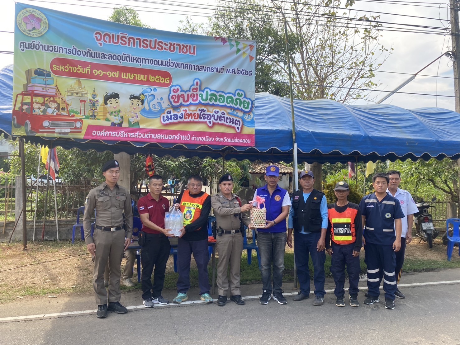 ปฏิบัติหน้าที่ศูนย์ปฏิบัติการป้องกันและลดอุบัติเหตุทางถนนช่วงเทศกาลสงกรานต์ ณ จุดบริการฯ หน้า องค์การบริหารส่วนตำบลหมอกจำแป่ วันที่ 13 เมษายน 2568
