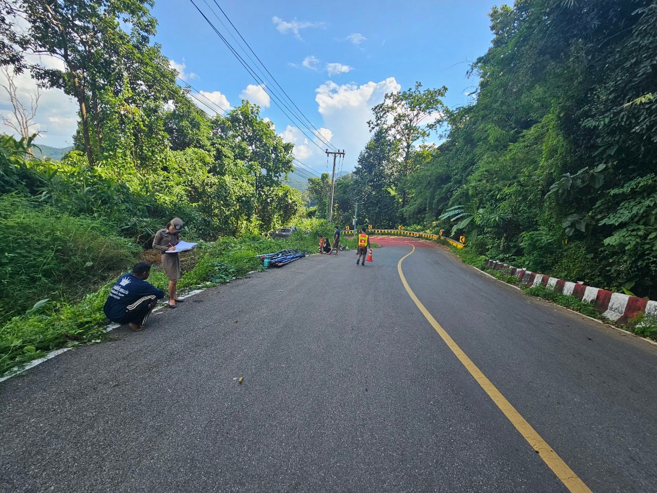 พนักงานสอบสวนเวร ออกตรวจสอบที่เกิดเหตุ อุบัติเหตุรถยนต์พลิกคว่ำลงข้างทาง