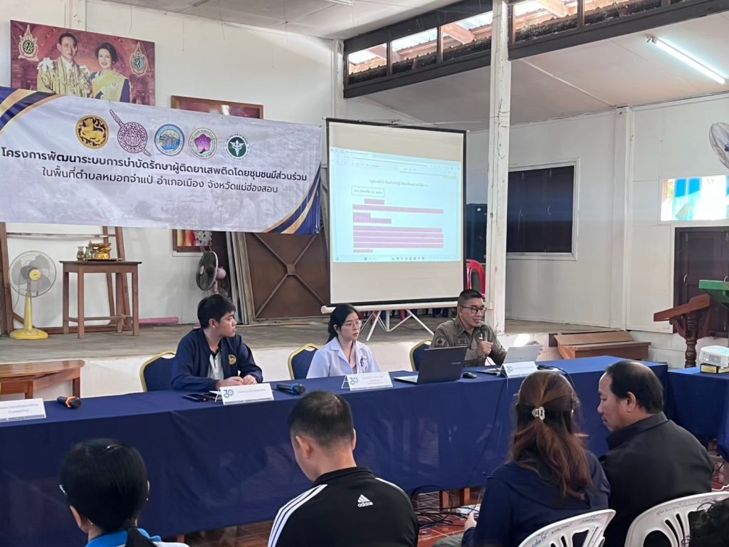 พ.ต.ท.สุรจิตต์ เหล่าจำรูณ สว.สภ.หมอกจำแป่ พร้อมด้วยข้าราชการตำรวจ สภ.หมอกจำแป่ และเจ้าหน้าที่โรงพยาบาลธัญญารักษ์แม่ฮ่องสอน ร่วมจัดโครงการพัฒนาระบบการบำบัดรักษาผู้ติดยาเสพติดโดยชุมชนมีส่วนร่วม ในพื้นที่ ตำบลหมอกจำแป่ อำเภอเมือง จังหวัดแม่ฮ่องสอน