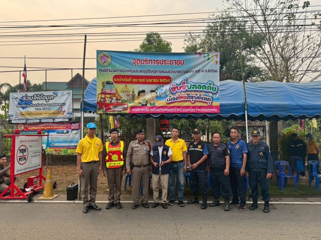 ร.ต.อ.นเรศ ศรีโสภา รอง สว(สส.)สภ.หมอกจำแป่ ร้อยเวร 20 ,สายตรวจ พร้อมจนท.ฝ่ายปกครอง ,ชรบ.,อสม. อบต.หมอกจำแป่ ได้ร่วม ปฎิบัติหน้าที่เปิดศูนย์ปฏิบัติการป้องกันและลดอุบัติเหตุทางถนนช่วงเทศกาลสงกรานต์ ประจำปี 2568 ณ จุดบริการฯ บริเวณด้านหน้า องค์การบริหารส่วนตำบลหมอกจำแป่ หมู่ 1 ต.หมอกจำแป่ อ.เมือง จ.แม่ฮ่องสอน